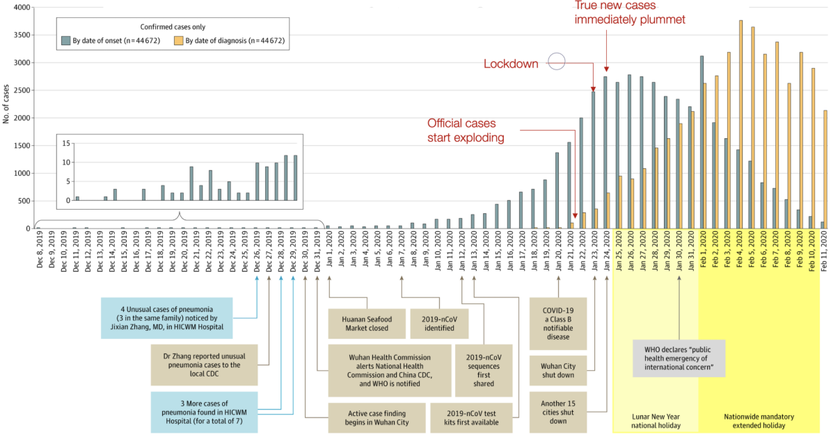 | Progress of pandemic, China Source: JAMA Feb 24. Wu and McGoogan. Annotations by Tomas Pujeyo |